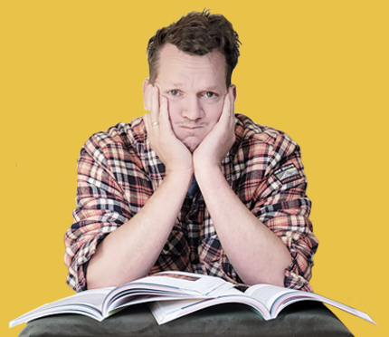 Lektion femton - Hej fröken Svensson, Jag stod på en stege igen den här veckan. Jag skulle måla ett hus. Det låg vid skogsbrynet. Helt avskilt. Jag bestämde mig för att ställa upp en högtalare och lära mig svenska fraser. Ljudlektionen var inställd på repetition. Jag klättrade upp på stegen med min yoghurtbägare med Falun röd färg och började måla träverket. ”Jag ser en pojke. Vad gör pojken? Pojken sover.” ”Chicago är väldigt annorlunda jämfört med Boston." ”Var försiktig med körningen.” ”Han är väldigt irriterande.” Det fanns en hel del dumma meningar. Alldeles för specifika för en nybörjare som jag. Jag upprepade alla meningar medan jag målade med långa drag med den röda färgen. Ljudlektionen innehöll tjugo meningar och eftersom jag hade satt den på repeat kom de tillbaka varannan minut. Egentligen var det meningslöst eftersom mina tankar vandrade iväg av tristess. Jag tänkte på skogen, på den underbara doften av höst, på fika, på middagen ikväll, på predikan jag skulle hålla nästa vecka, på mina barn, på om jag hade tillräckligt med färg i min burk, osv. ”Dag och dag.” ”Det är en bra idé.” ”Isen är inte tillräckligt tjock här ännu.” ”Hjälp mig.” Ljuden som kom från högtalaren, som stod ganska högt på denna tysta plats, försvann i bakgrunden och tystnaden på denna plats och mina tankar tog över. Ibland, mellan tankarna, kom en del av en mening medvetet förbi och jag upprepade den: ”helt annorlunda än Boston.” Och sedan förlorade jag mig igen i mina tankar. Det var en löjlig scen som många svenskar skulle skratta åt. ”Får jag tala med fru Smith, tack?” ”Jag måste handla idag.” ”Han är ute och promenerar.” ”Jag har ätit för länge sedan.” När min yoghurtbägare var tom hade jag hört denna serie meningar minst fyrtio gånger. Fraserna hade etsat sig fast i mitt undermedvetna, men jag kunde inte upprepa en enda av dem. Jag packade ihop mina saker och gick hem. Nästa dag hade jag ett samtal med en svensk dam och plötsligt sa jag: ”Ja, det är en bra idé.” Jag var stolt. Det lät så professionellt. Så svenskt. På natten, när vi sov, vaknade min fru plötsligt av ett konstigt ljud. Hon tände lampan och såg mig slå med min högra hand i luften, medan jag ropade: ”Var försiktig med körningen! Var försiktig med körningen! Chicago är väldigt annorlunda jämfört med Boston. Hjälp mig!” Jag hade en tjock svettpanna. Agnes ropade: ”Timon!” och jag vaknade med ett ryck. Jag behövde hämta andan. Jag hade drunknat i en stor burk röd färg och ropade på hjälp på mitt bästa svenska, men ingen svensk stannade för att hjälpa mig, eftersom de inte förstod mig!” Agnes gjorde en varm kopp ”Oh Boy” åt mig och vi gick och la oss igen. Nästa morgon bestämde jag mig för att inte längre lyssna så slarvigt på ljudlektionerna. Det verkade som om meningarna hade gjutits in omedvetet och befann sig i ett sidorum i min hjärna. Där satt de fångna tills i natt, då de med våld trängde sig på mig. Kanske är det bättre att sluta lyssna på ljudlektionerna helt och hållet, vad tycker du, fröken Svensson? I alla fall sa Agnes att de svenska meningarna kom ut väldigt flytande. ”Det lät väldigt professionellt.” Så i mina drömmar kan jag prata svenska, nu gäller det bara att lära mig när jag är vaken.